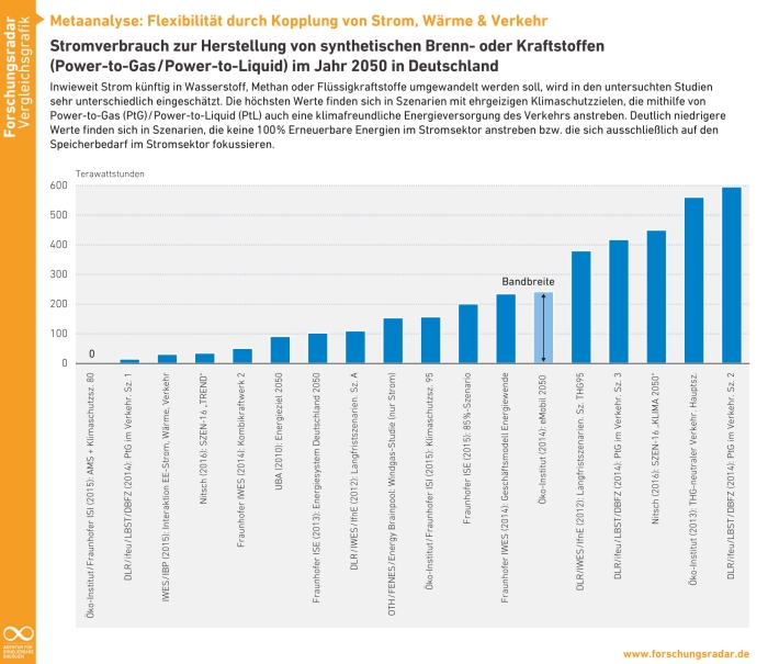 Im Jahr 2015 erzeugten die Erneuerbaren Energien in Deutschland 196 Terawattstunden Strom und trugen damit 30 Prozent zur Bruttostromerzeugung bei. Auch wenn zunehmend Strom exportiert wird und es regional aufgrund von Netzengpässen zur zeitweisen Abregelung von Erneuerbare-Energien-Anlagen kommt, hat die Erzeugung aus Erneuerbaren Energien bisher zu keinem Zeitpunkt die Nachfrage übertroffen. „Der von interessierter Seite geprägte Begriff des ‚Wegwerfstroms‘ ist damit fehl am Platz“, erklärt Vohrer. Die Metaanalyse zeigt: Wenn es in Zukunft absehbar zu Situationen kommt, in denen die regenerative Erzeugungsleistung die Nachfrage innerhalb des Stromsektors übertrifft, können diese Strommengen fossile Energieträger in der Wärmeversorgung und im Verkehr ersetzen und so für mehr Klimaschutz in diesen Sektoren sorgen. Je nach Szenario könnte der Strombedarf in Deutschland durch die stärkere Stromnutzung für Wärme und Verkehr deutlich steigen – und mit ihm der Ausbaubedarf für Windenergie- und Photovoltaikanlagen.